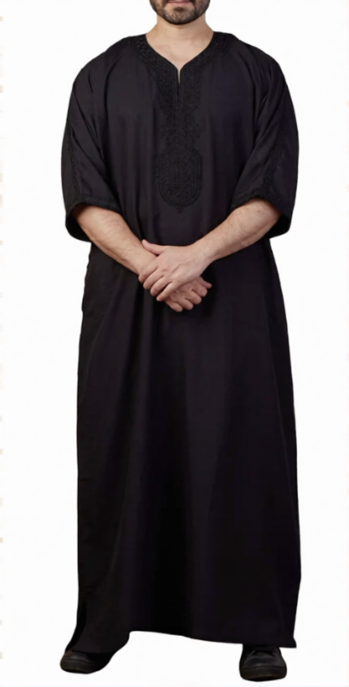 Black Moroccan Thobe with Beautiful Embroidery - Pre-order